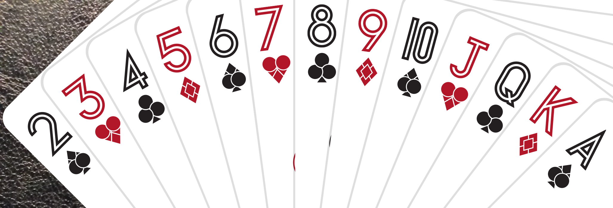 I have custom designed the font for the cards primarily based on Futura. My aim was to keep round portions as circular arcs and corners as sharp points to mimic the circles and diamonds that make up the pips. The other objective was to maintain consistent width for each number and letter for a consistent look when the cards are fanned in your hand.